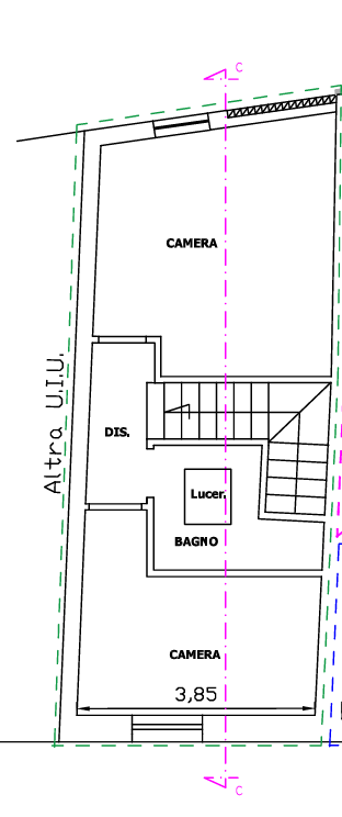 Al primo piano si sviluppa la zona notte, composta da una camera matrimoniale, una camera singola e un bagno moderno con doccia.