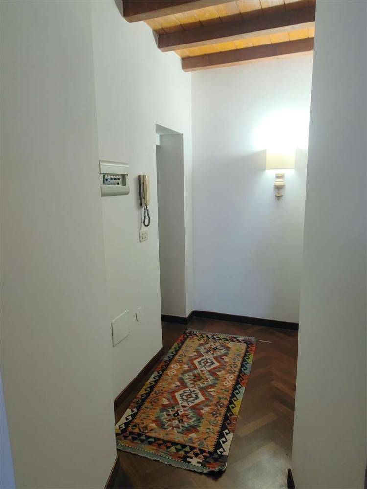 Si accede da una caratteristica corte con arco, nicchie, scala in pietra bianca tipica locale e travi in legno a vista. Il pianerottolo al piano primo ci regala un comodo doppio ingresso che introduce da una parte a: ingresso, cucina abitabile, bagno con doccia e ampia camera da letto matrimoniale con parquet e finestra con vista sulla via; dall'altra entrata troviamo un elegante ingresso in parquet con ampio studio e balcone vista mare, dove è possibile tramite porta collegare i due ambienti al primo piano.