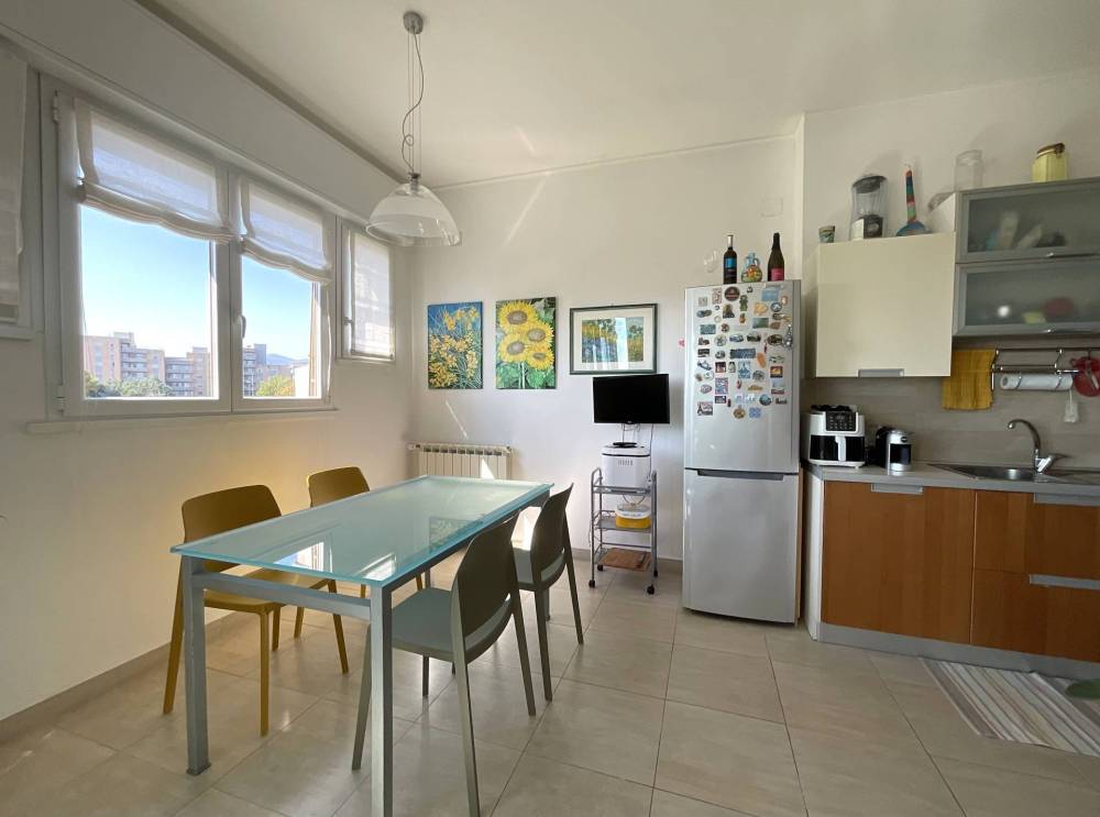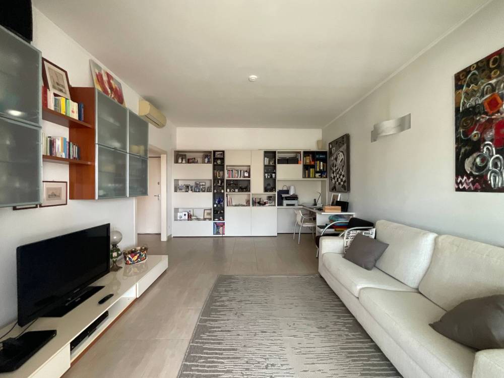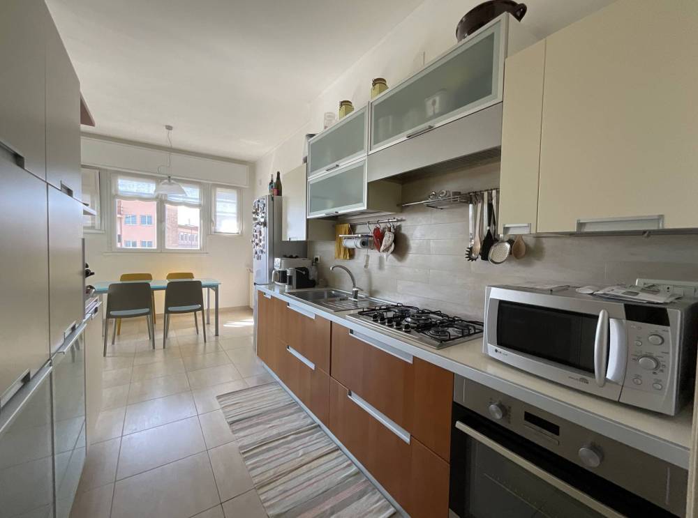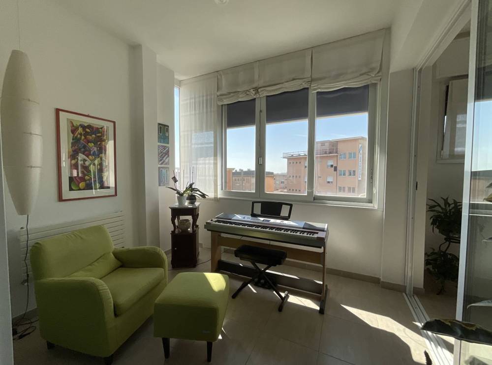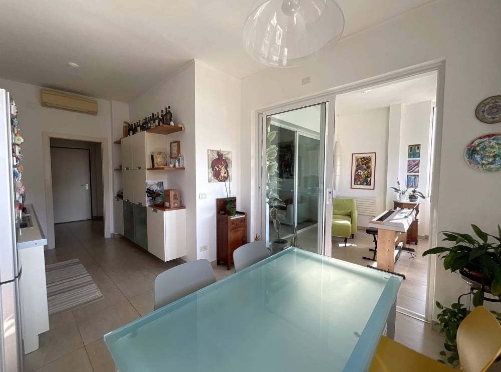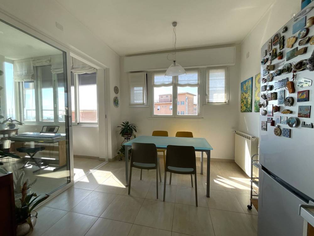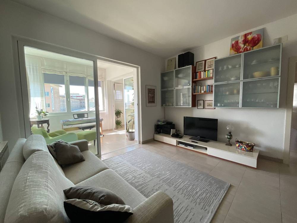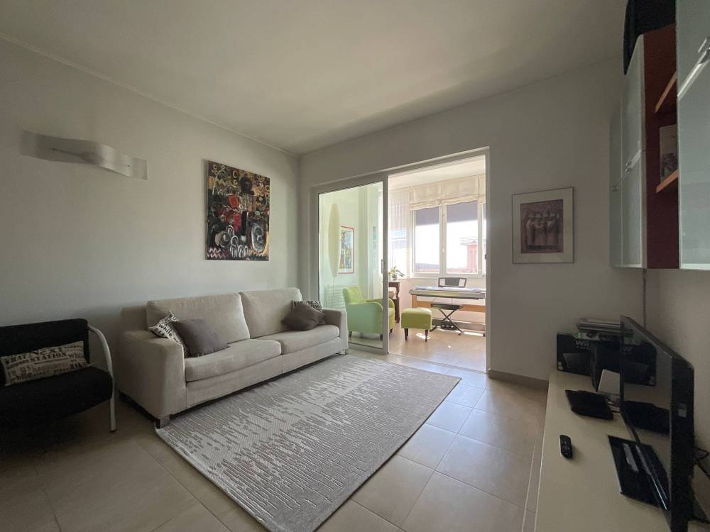 L' appartamento, caratterizzato da locali ampi e luminosi, ha una superficie di 130 mq. e si compone di ingresso, soggiorno e cucina abitabile, entrambe con accesso alla grande loggia angolare vivibile tutto l'anno e con vista mare; perfetta da adibire a zona lettura, smart-working o giardino d'inverno. Grande ed indiensabile ripostiglio completa la zona giorno. La zona notte si compone di 3 camere matrimoniali, due bagni ed ulteriore balcone loggiato.