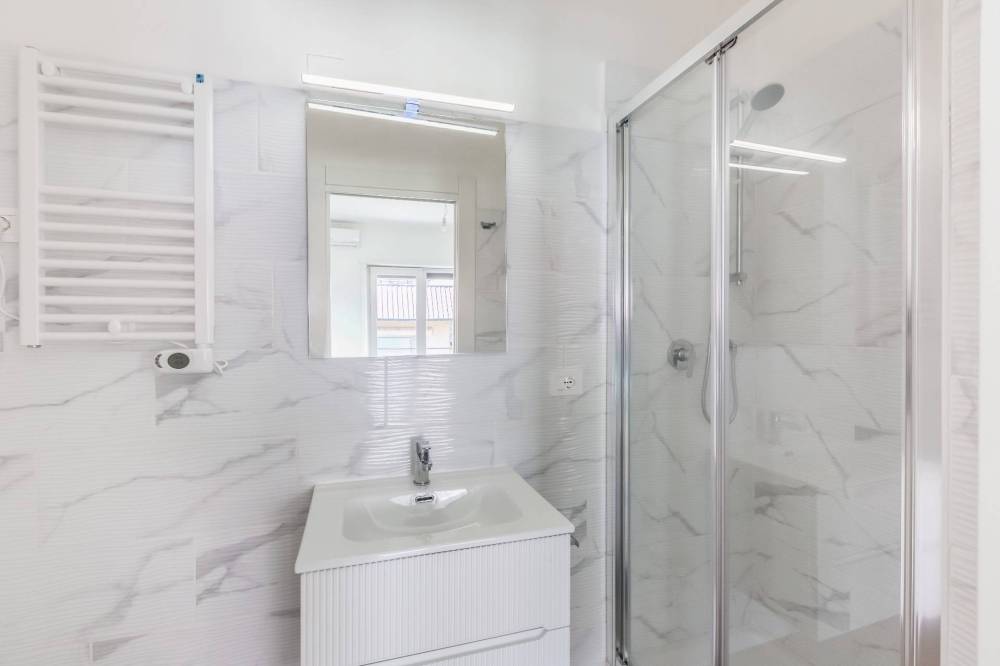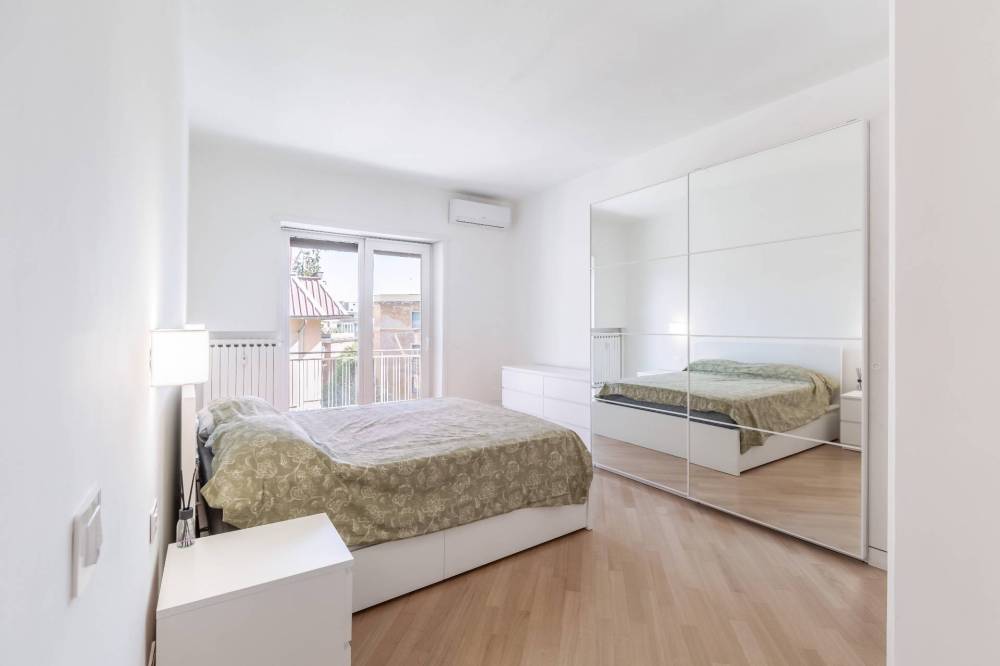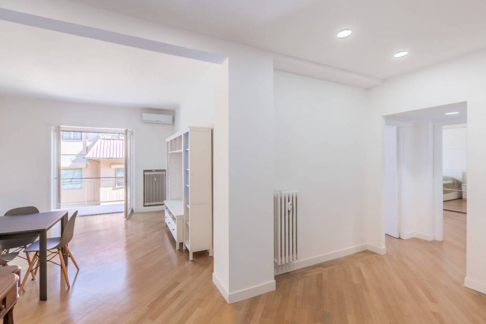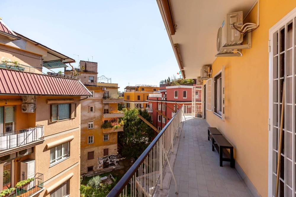 Limmobile si apre su un ampio ingresso che conduce alla zona giorno, composta da una sala da pranzo con grande finestra e accesso al balcone vivibile, dal quale si gode di affacci aperti e gradevoli tra i palazzi, con scorci panoramici fino alla cupola di San Pietro.