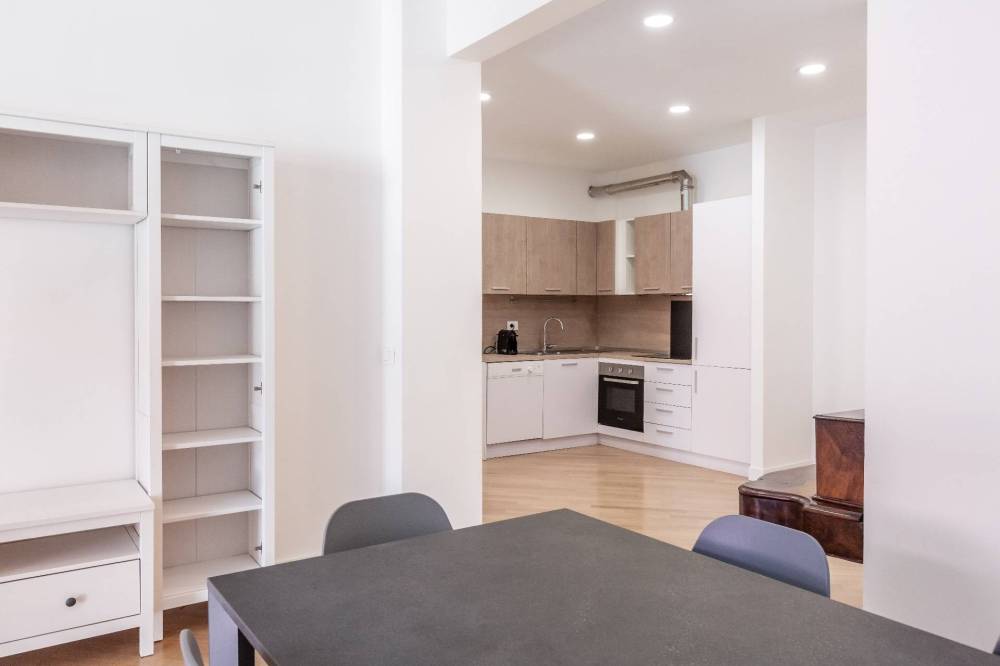 Langolo cottura, discretamente integrato nella zona pranzo, è stato realizzato con soluzioni funzionali e moderne, perfettamente in armonia con lo stile dellappartamento.