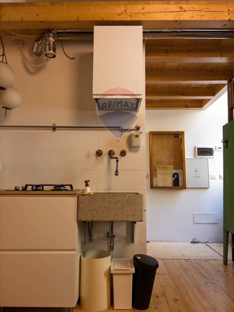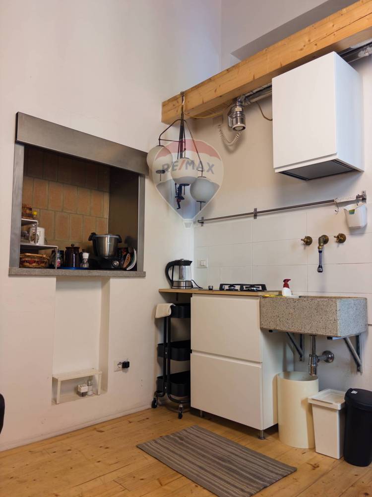 Il bagno, arredato con materiali di qualità e linee contemporanee, è completo di tutti i comfort. Sopra la zona giorno è stato ricavato un ripostiglio in quota, una soluzione intelligente che consente di ottimizzare al meglio gli spazi, mantenendo ordine e armonia.