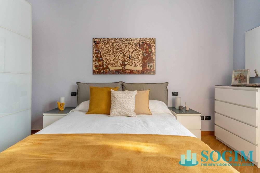 Si accede poi nel comodo e luminoso soggiorno con cucina a vista e, a seguire, nell'ampia camera matrimoniale.