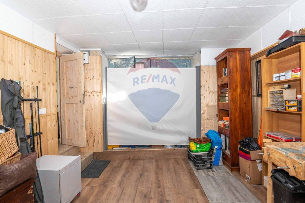 Il garage al piano terra dispone di un bagno e di uno spazio utilizzabile come ripostiglio