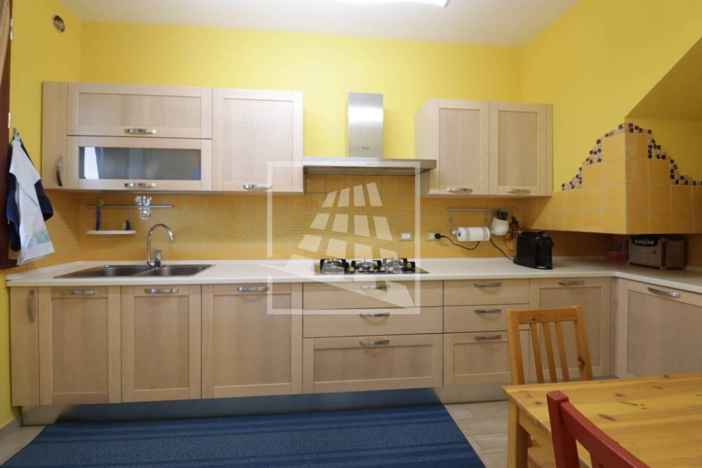 Accedendo al piano terra, si viene accolti in un ampio e accogliente soggiorno che conduce alla cucina abitabile e a un bagno di servizio.