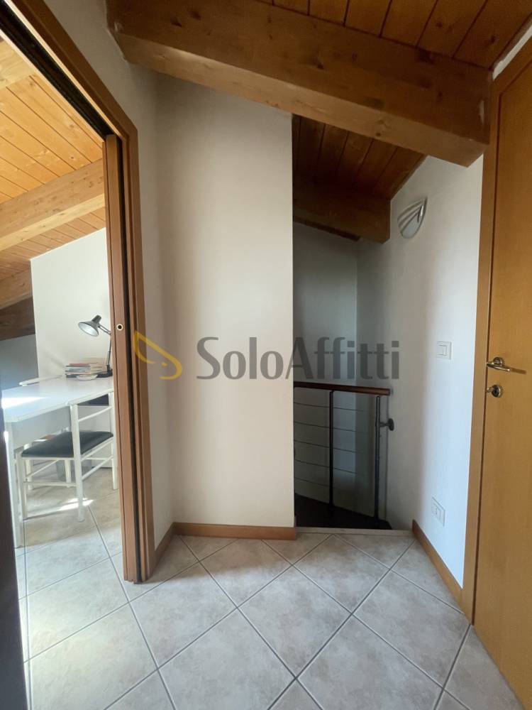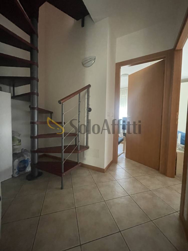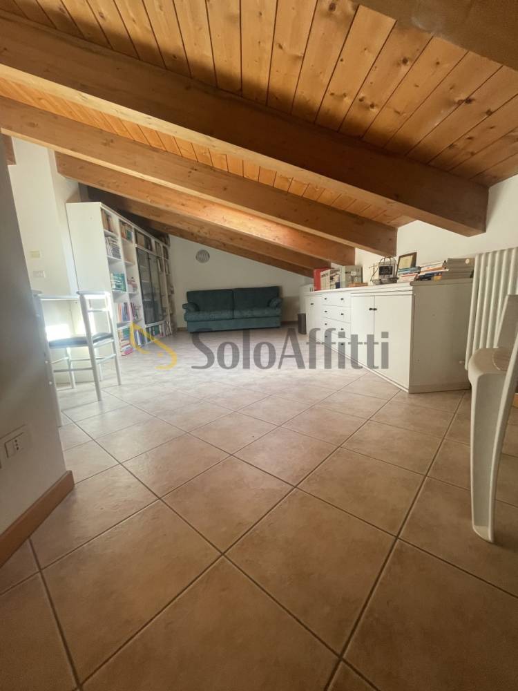 SANTARCANGELO DI R. -RN- A pochi passi dal centro, vicino a tutti i servizi, si affitta appartamento NON ARREDATO di mq80 circa, secondo piano con ascensore. Soggiorno con accesso a balcone loggiato, cucina con accesso a balcone, camera matrimoniale con accesso a balcone, studio, bagno con vasca. Sotto tetto con accesso da comoda scala a chiocciola con due stanze e secondo bagno con box doccia. Garage e cantina a piano semi interrato raggiungibili con ascensore interno e scivolo esterno con cancello automatico. A DISPOSIZIONE DA GENNAIO 2026 - A SERVIZIO DI COPPIA REFERENZIATA - NO ANIMALI