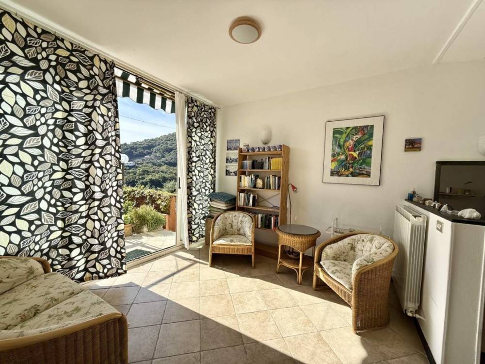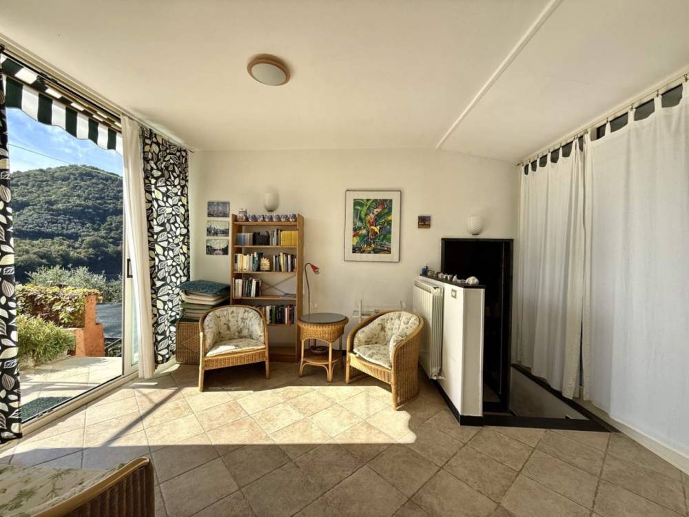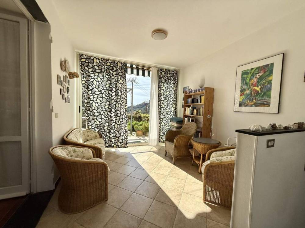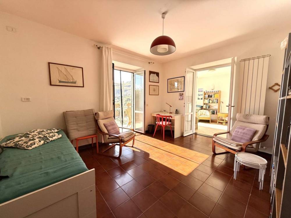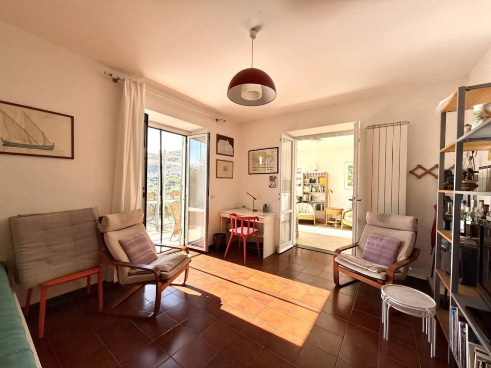 Dalla zona living si accede direttamente al terrazzo con splendida vista mare, perfetto per momenti di relax all’aperto o cene al tramonto.