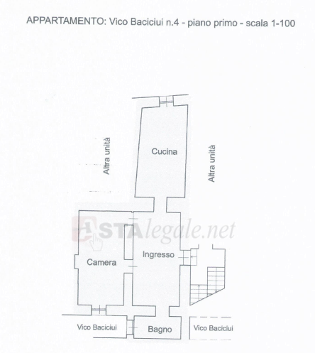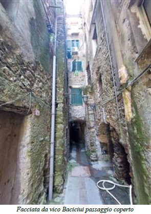 Appartamento al piano primo dell'edificio di vetusta costruzione ubicato al civico 4 di Vico Baciciui, nella frazione Torri di Ventimiglia, in un unico livello composto da ingresso, bagno, camera e cucina, raggiungibile da vano scala condominiale.
