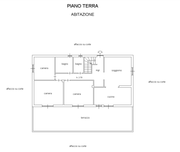 Il piano terra è composto da tre camere, sala, cucina e due bagni.