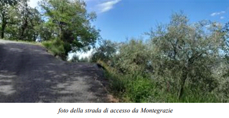 a) Frazione Montegrazie: proprietà piena su terreno agricolo di mq 1800, gerbido, privo di allacci idrici in funzione, con muri in pietra a secco in parte crollati, accessibile con mezzi agricoli da stradina in terra battuta interpoderale con fondi limitrofi.