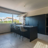 Al piano terra si trova una luminosa zona living con cucina a vista e accesso diretto al balcone, una camera da letto, garage con zona lavanderia e bagno di servizio.