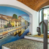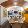 La pavimentazione in ceramica, i soffitti a volta con mattoni a vista, i dipinti a muro creano unatmosfera molto accogliente per la clientela e nello stesso tempo molto professionale.