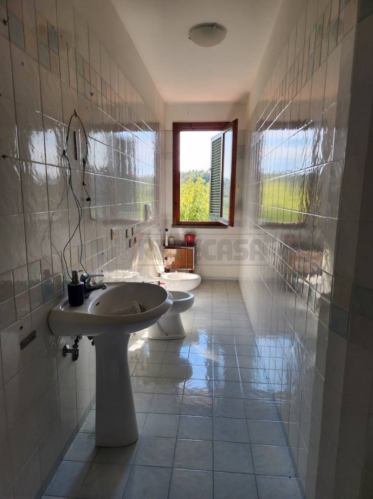 S. Maria a Monte Falorni In posizione panoramica appena decentrata, Villetta a schiera angolare con l'ampio giardino/resede su 3 lati in cui vi sono vari posti auto, composta di ingresso nell'ampia sala dove è presente il caminetto e attraverso la quale si accede all'ampia cucina abitabile e wc, al piano terra; salendo le scale raggiungiamo il 1° piano dove troviamo la zona notte composta da una camera matrimoniale, 2 camerette ed il bagno principale oltre sottotetto/mansarda (con Hmax=1,90 cm) di c.a mq 25. Completano la proprietà al piano interrato, collegato da comoda scala interna, il garage, una cantina con bagno ed una nicchia dove trova posto la lavatrice. Buone condizioni, libera subito, solo per REFERENZIATI, cl. Energ. E, Ipe=165 Rif. 897032-1 € 980,00