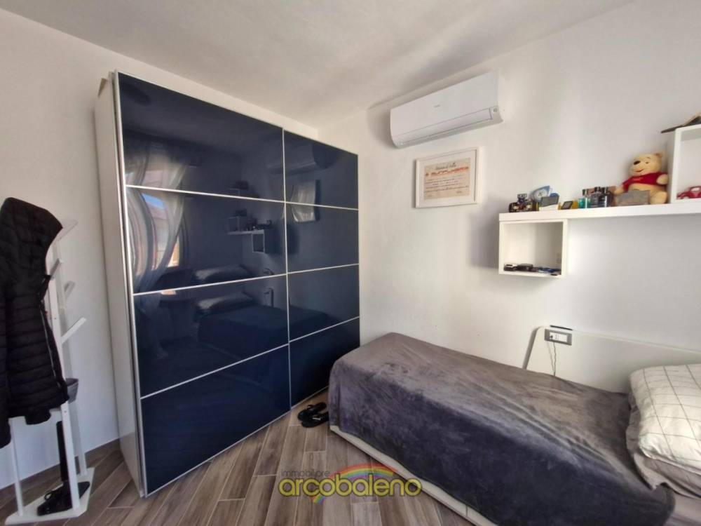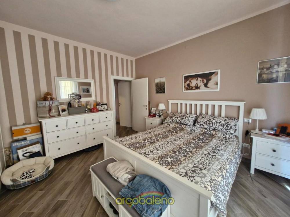 L’immobile è composto da ampio soggiorno con angolo cottura, porta-finestra su lunga terrazza, camera, disimpegno zona notte, due camere matrimoniali, bagno e lavanderia