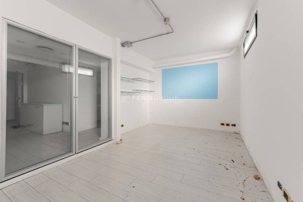 L’ufficio si sviluppa con spazi ampi e ben distribuiti, caratterizzati da una configurazione prevalentemente open space e da una forte luminosità, grazie alla presenza di numerose finestre. All’ingresso, sulla sinistra, si apre una grande zona multifunzionale, adatta a ospitare postazioni operative, un archivio o una sala riunioni, accompagnata da un pratico ripostiglio. Sulla destra, un corridoio conduce ad altri ambienti e al bagno finestrato, con affaccio su via Negroli.