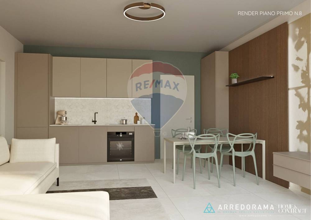una grande zona living aperta e luminosa che dialoga con l’esterno, una zona notte composta da due camere, un bagno ed un disimpegno funzionale.