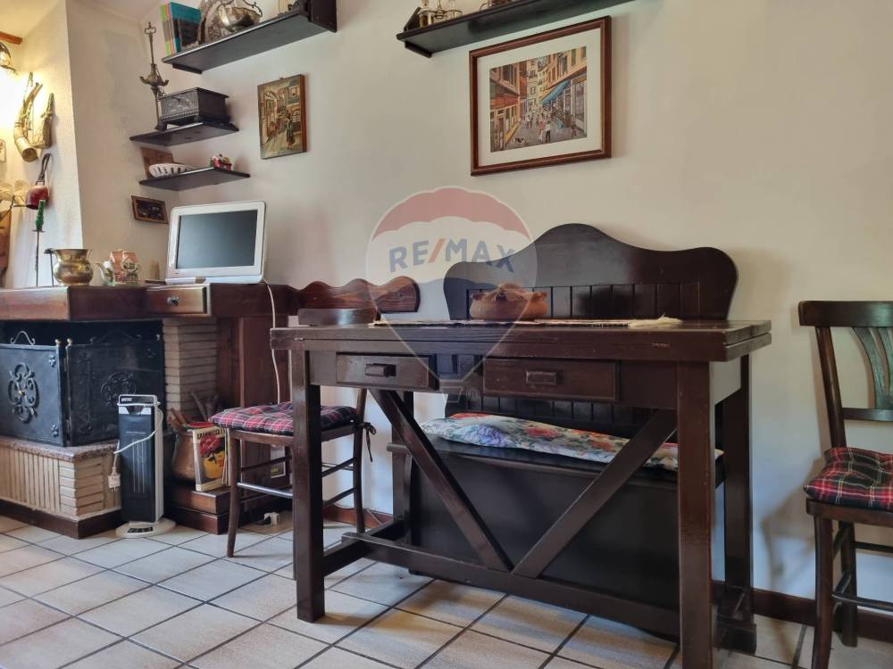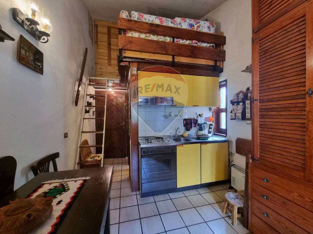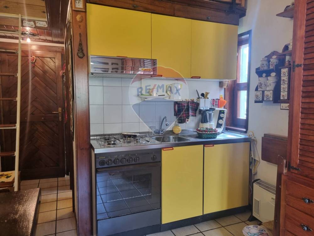 Ingresso in soggiorno con caminetto, angolo cottura, bagno con piccola finestra .Soppalco, alto ed abitabile, adibito a cameretta da letto con finestra.