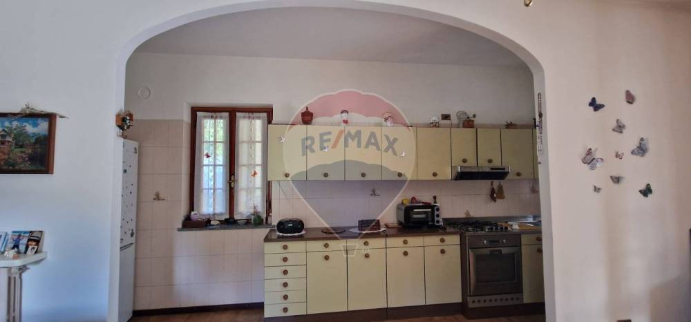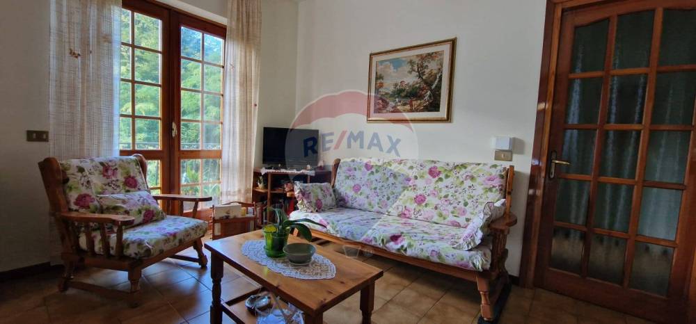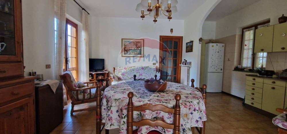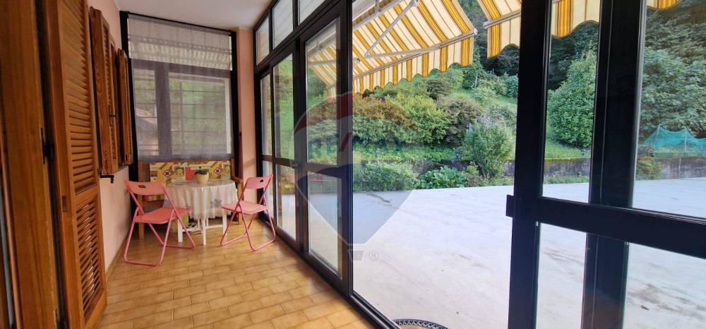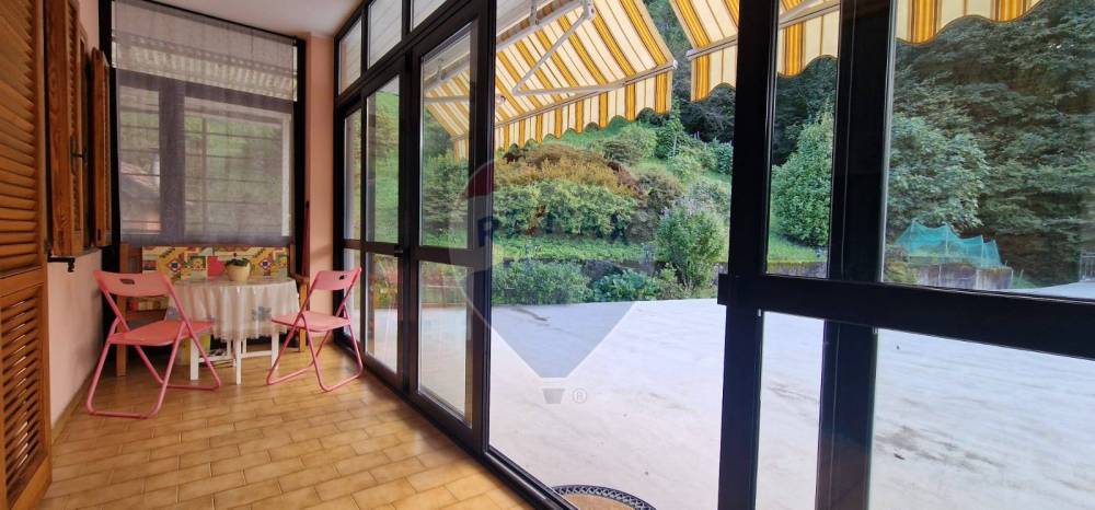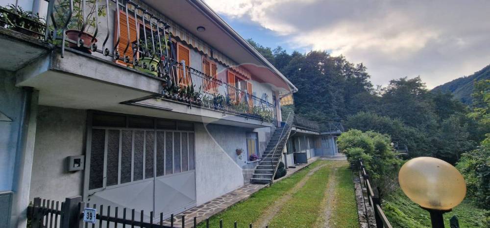 L'intera proprietà si sviluppa su un ampio terreno oltre a boschi adiacenti per  3.000 mq ed è composta da un appartamento trilocale con veranda chiusa e portico, cantina, box doppio, magazzino di 100 mq, legnaia e da un locale seminterrato con affaccio sulla valle.