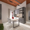 L'abitazione si apre su un soggiorno con cucina a vista e accesso diretto a un'area privata esterna di 65 mq, ideale per momenti di relax allaperto o per creare un angolo verde terrazzato.