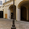 Le ampie finestre si affacciano sul caratteristico cortile interno, offrendo tranquillità e una piacevole vista sui dettagli architettonici del palazzo.