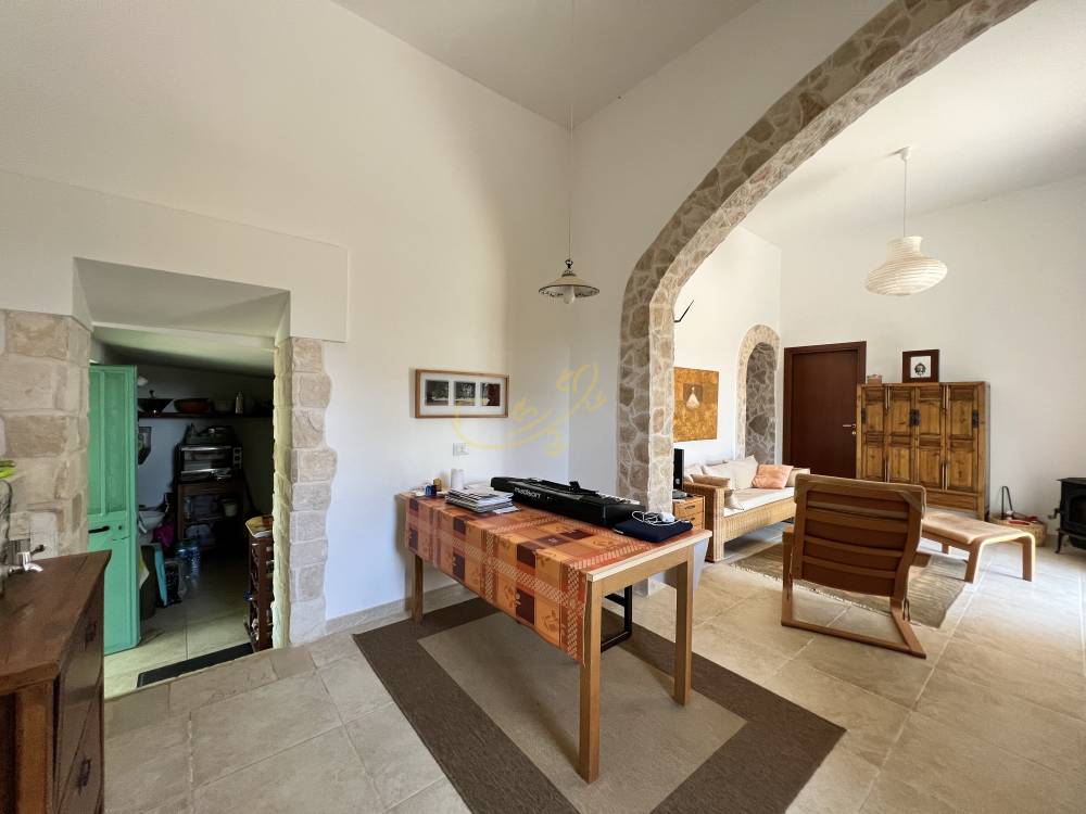 La superficie interna è di circa mq 100 e si divide in: ingresso in zona living con ampie volte e dettagli in pietra. Sul lato sinistro, cucinino. Sul lato destro zona notte con due camere matrimoniali e un bagno con doccia. Una scala in pietra conduce al primo piano con ulteriore camera ad uso deposito e accesso al terrazzo.