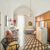 Tramite una scala, si accede al primo piano dove si sviluppa l'intera casa di 135 mq circa, con doppio affaccio sulla via principale, divisa in: ingresso in ampio soggiorno con volte a vela, cucina con fracassè, un bagno, e due camere da letto matrimoniali ampie, di cui una con volte affrescate originali.