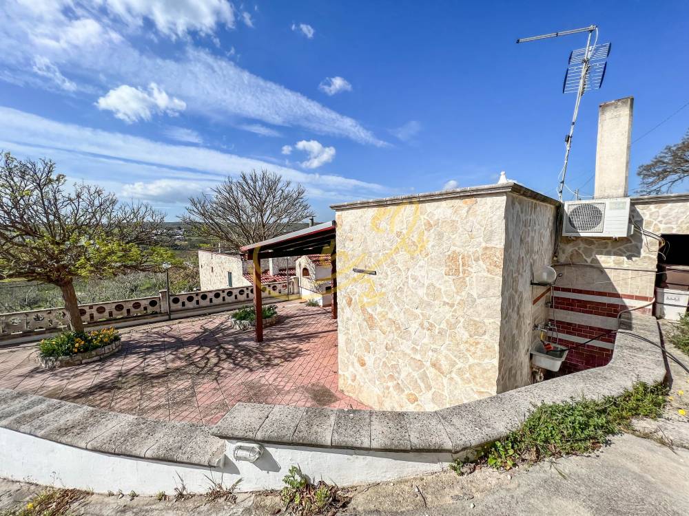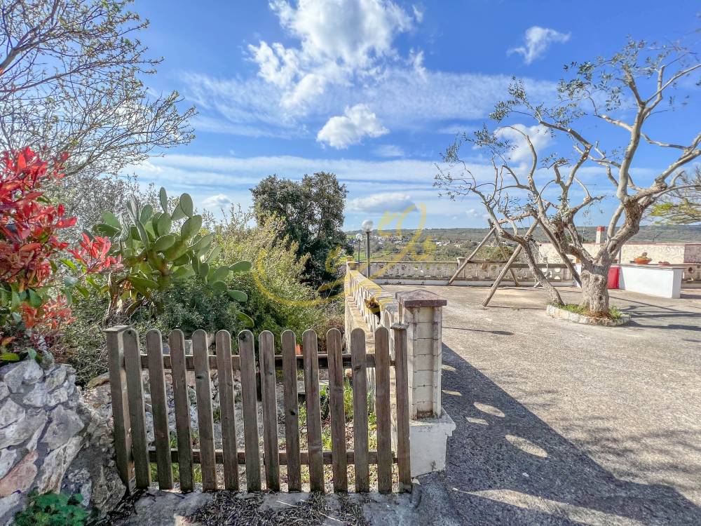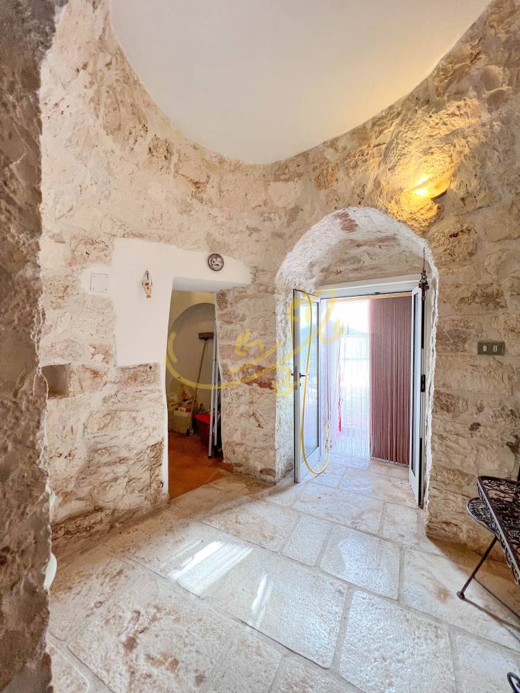 Tramite un cancello si accede al piazzale con vista panoramica sulla valle, la zona esterna è attrezzata con grande forno a legna e barbecue. Tramite l'ingresso principale si accede alla lamia, con piccolo soggiorno con camino e angolo cucina, una piccola camera da letto e bagno con doccia, il trullo molto ampio, con pavimento in chianca originale, accoglie la camera matrimoniale e un disimpegno che lo collega alla lamia. La casa si trova vicino ad altre abitazioni, ottimo investimento per villeggiatura estiva.