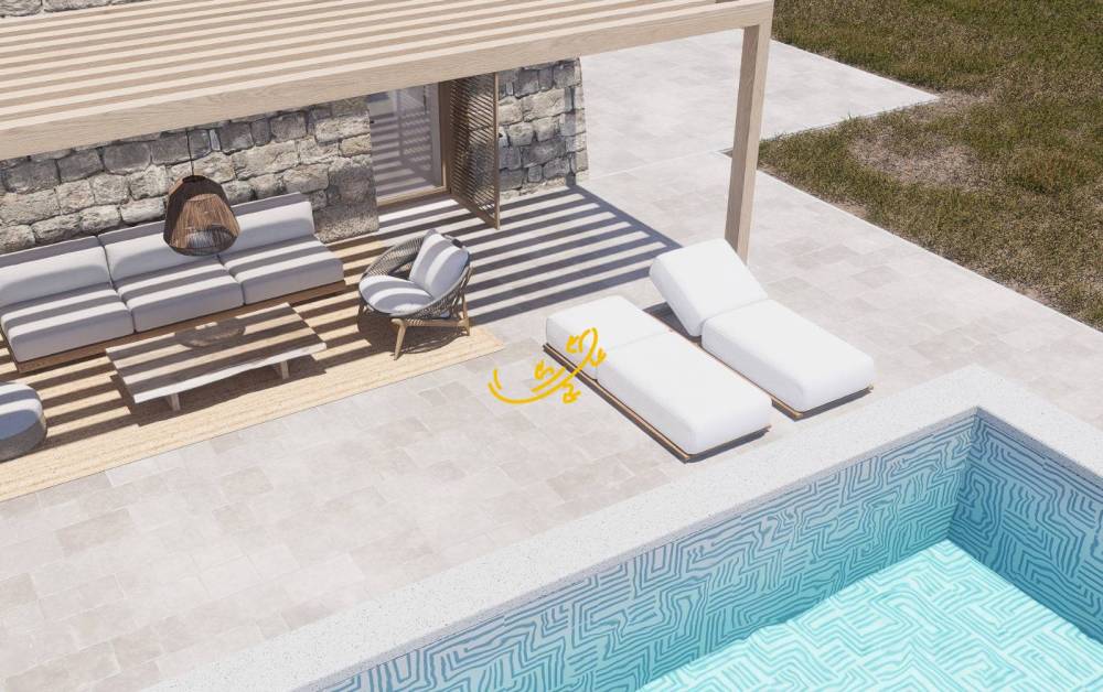 L'ampliamento prevede la realizzazione di n. 3 camere matrimoniali (tutte di minimo 14 mq) con relativi bagni di pertinenza ed una ampia cucina abitabile di 22 mq che grazie ad una grande vetrata scorrevole si affaccia su una meravigliosa zona piscina.