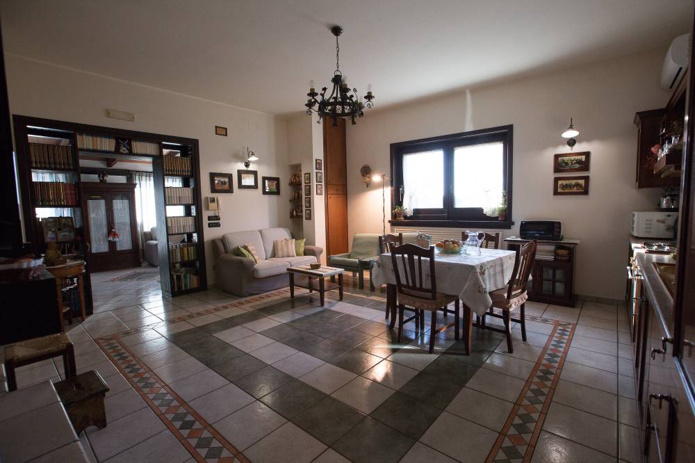 Al piano rialzato vi è un ingresso in ampio soggiorno con camino, cucina in open space, disimpegno per la zona notte, 2 camere da letto di cui una matrimoniale, un bagno con vasca idromassaggio ed una lavanderia.