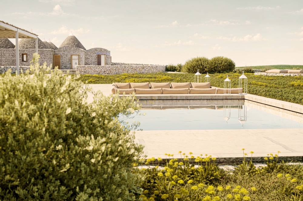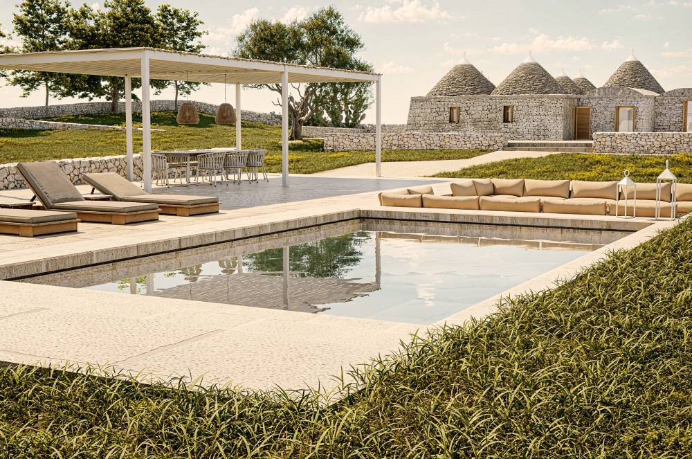 All' esterno zona relax e tipica aia in chianche, pergolato attrezzato, piscina di 40 mq ed area solarium.