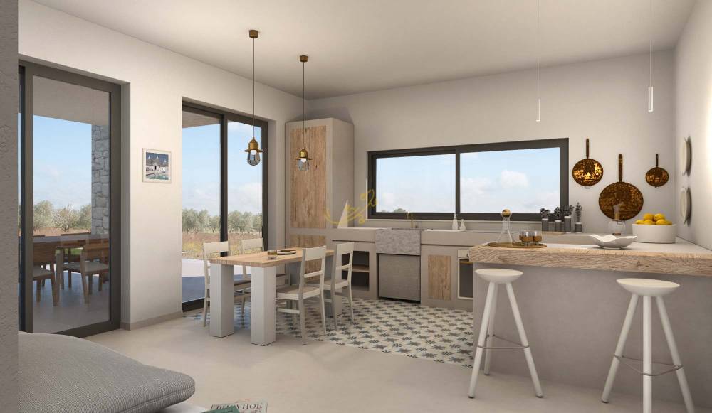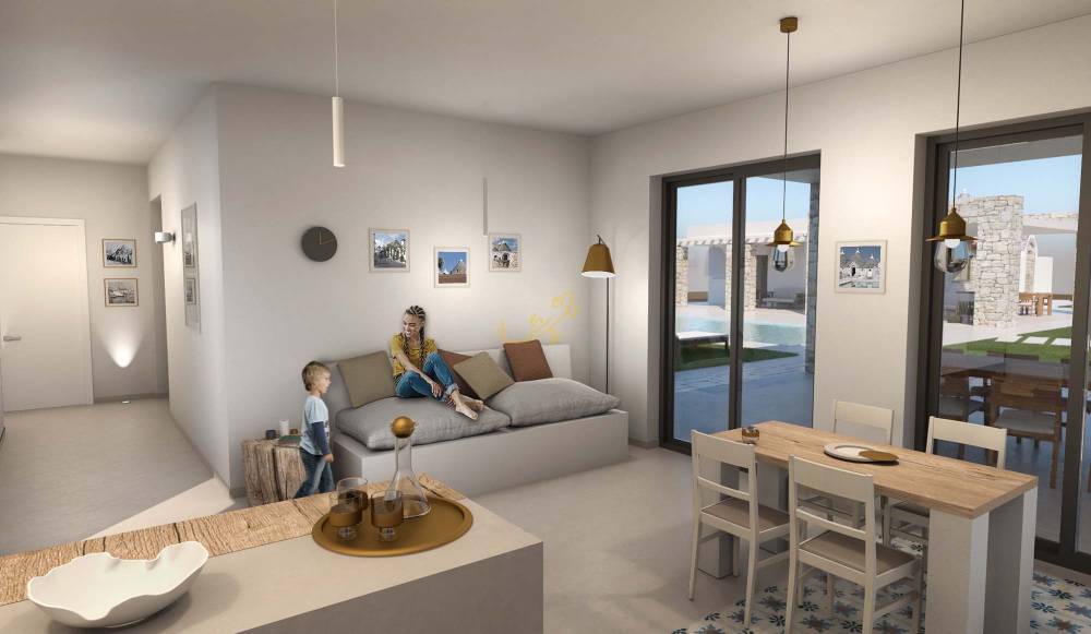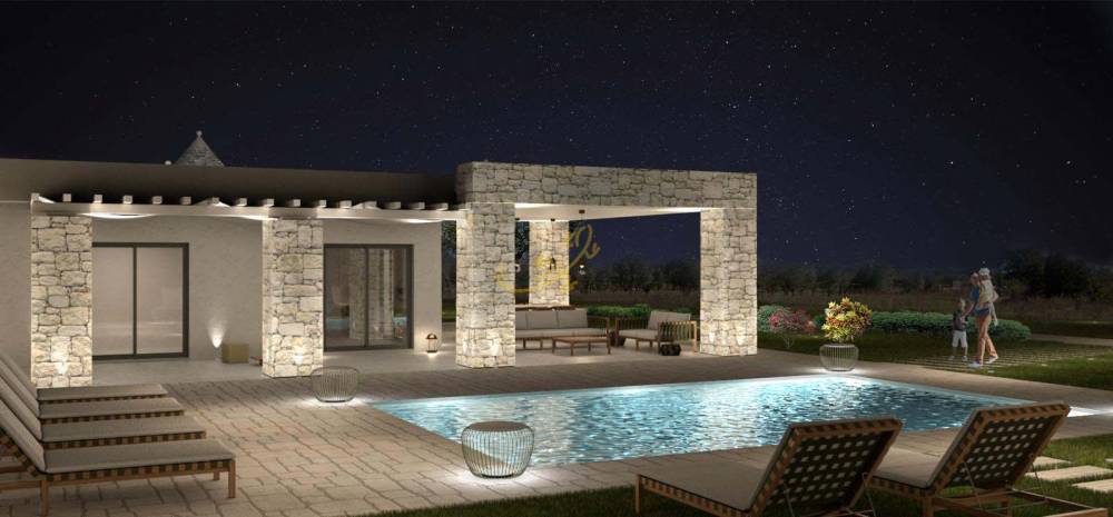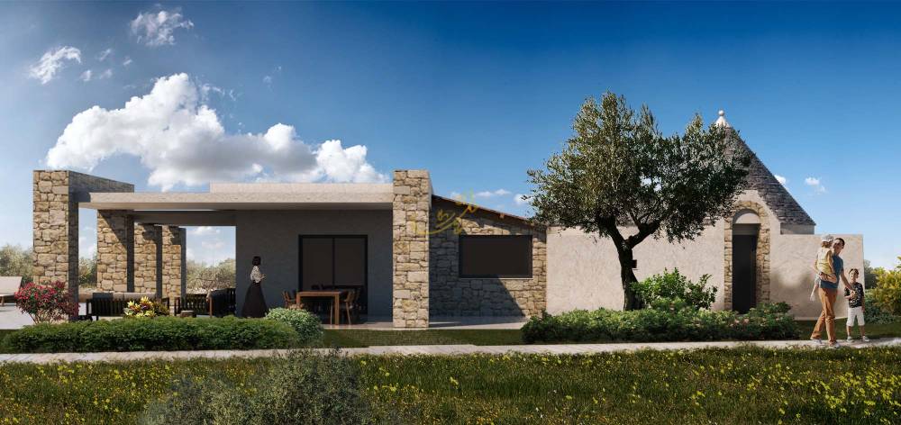 L'immobile è composto da un trullo con lamia di circa 90 mq con veranda coperta di circa 44 mq, ingresso in ampio soggiorno, cucina abitabile, due camere da letto matrimoniali entrambe con bagno en suite.