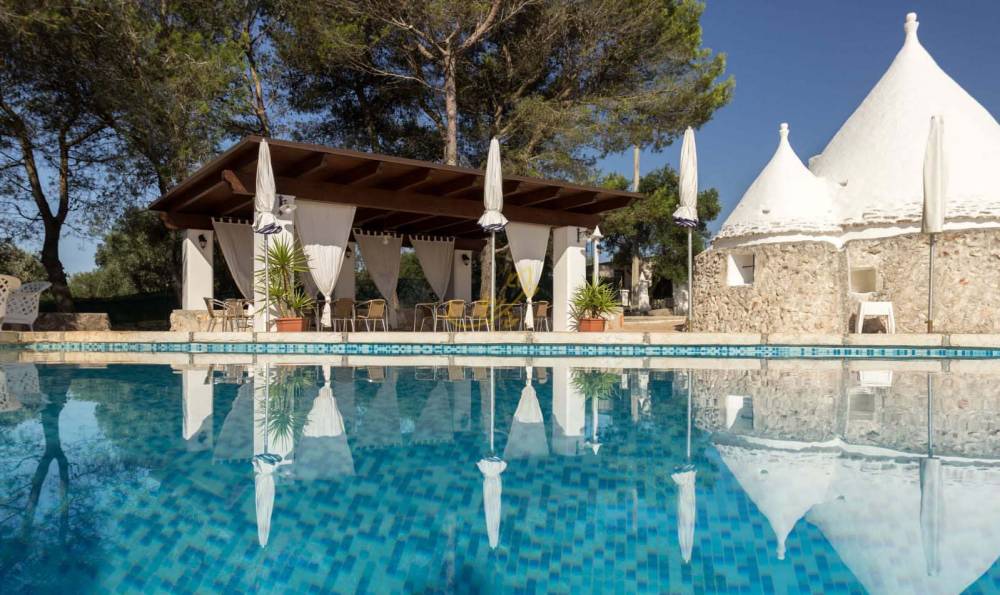 Il complesso è composto da un'abitazione principale in trulli con ingresso in ampio soggiorno con camino, cucina abitabile con forno a legna, cantina, tre camere da letto e due bagni.