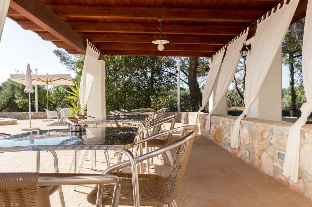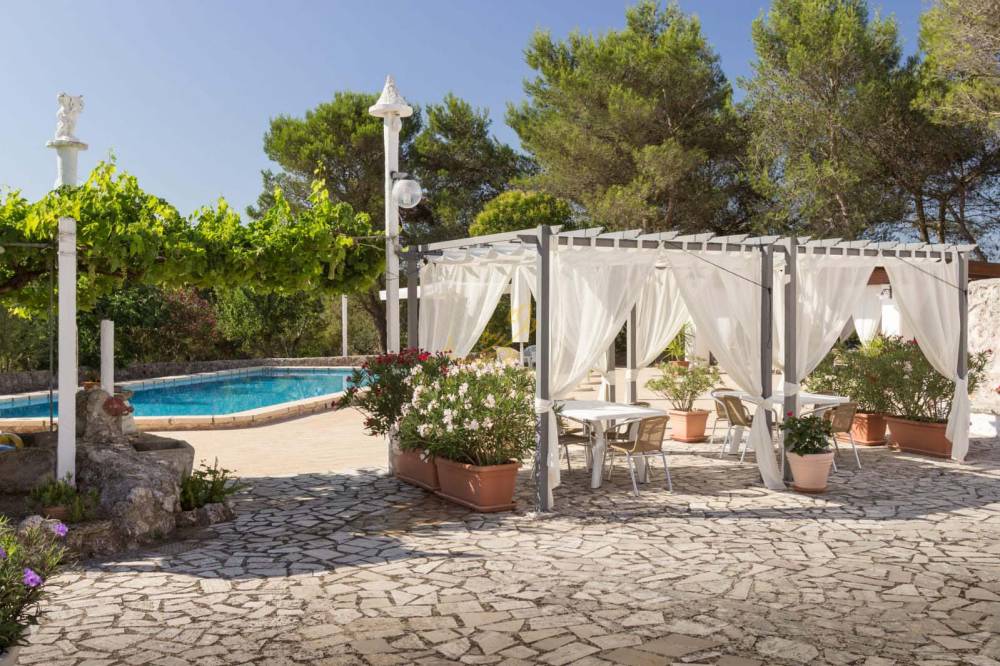 Porticato attrezzato con tavolo da pranzo, piscina (13x6) con area solarium, gazebo e bagno.