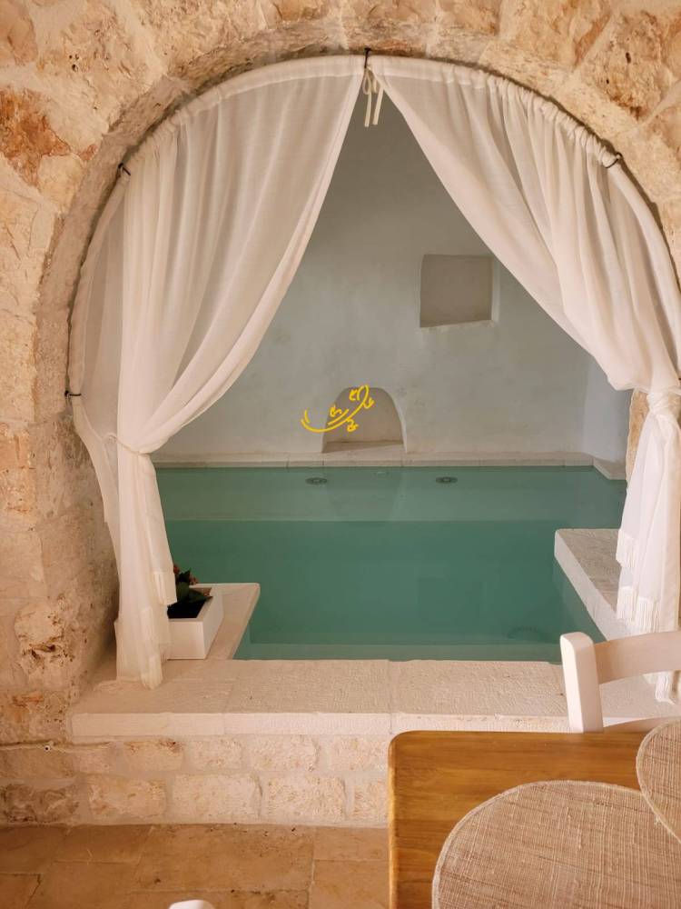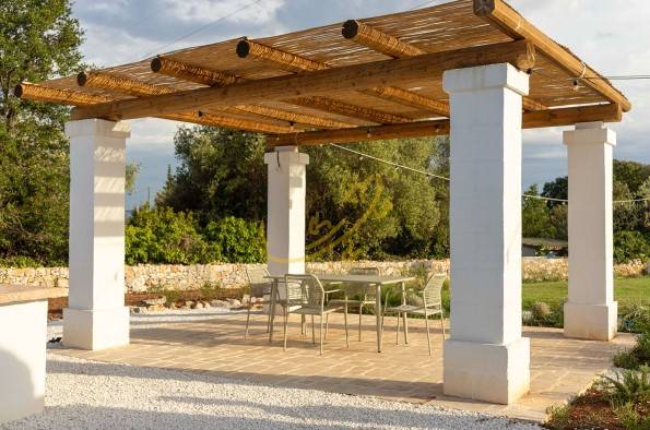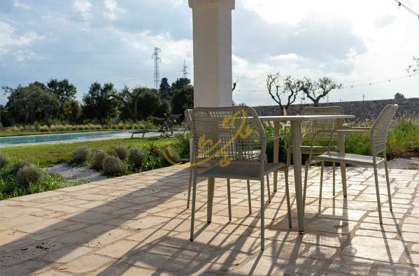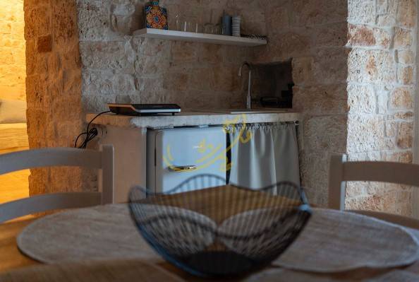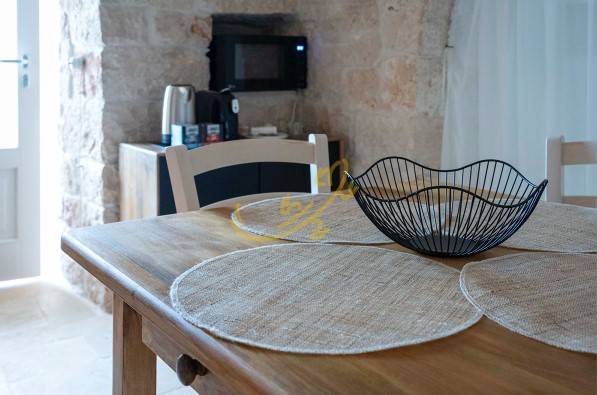 L'immobile ha una superficie interna di circa 120 mq e presenta finiture di pregio, con un piazzale realizzato in chianche e pietra a vista. All'interno, il pavimento in chianche crea un ambiente caldo e accogliente.