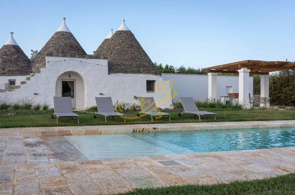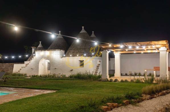 Proponiamo in vendita un incantevole complesso di trulli ristrutturati, immerso in un terreno di circa un ettaro, arricchito da alberi da frutto e ulivi, a 3 km da Putignano. La piscina, circondata da prato inglese, offre un'atmosfera di relax e tranquillità.