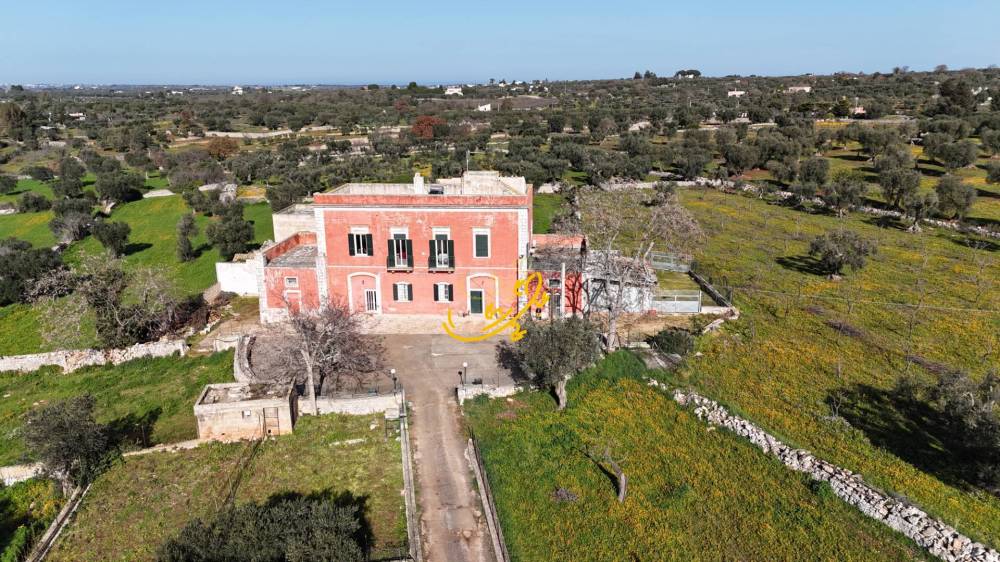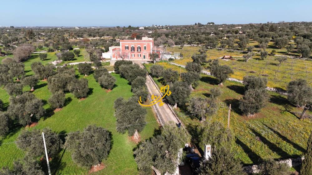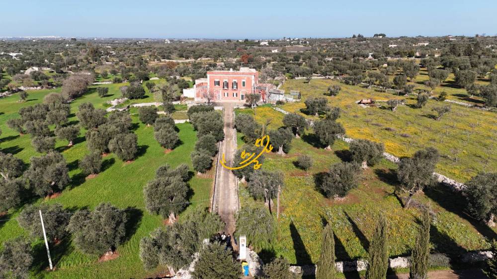 Un viale daccesso bordato di ulivi conduce alla proprietà, anticipata da un piazzale in chianca originale.