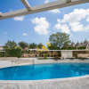 Essa comprende un ristorante con 150 posti e cucina esaurientemente attrezzata, con ampia dispensa, spogliatoi e bagni distinti uomo-donna per il personale, ingresso di disimpegno e servizi per disabili; una sala riunioni capace di ospitare fino a 120 persone; due piscine esterne con illuminazione notturna, scavate nella roccia, una delle quali fornita di impianto idromassaggio, nel contesto di una grande terrazza-solarium con vista panoramica; campo da tennis recintato e provvisto di illuminazione notturna, parcheggio dedicato e ingresso autonomo; campo polivalente da pallacanestro e volley anchesso recintato e fornito di illuminazione notturna; campo da bocce con illuminazione notturna; struttura spa, con bagno turco, piscina per idromassaggi, vasca per talassoterapia, zona massaggi, sauna, sala scrub, fango terapia, spogliatoi e bagni, divisi in sezioni per uomo e donna; quattro parcheggi interni con cancelli autonomi, telecomandati e videosorvegliati; area esterna per giochi per bambini; giardino attrezzato con sentieri in pietra illuminati, ampio piato inglese interamente irrigato e impreziosito da alberi secolari dulivo, querce antiche e piante ornamentali. Gli ambienti sono forniti di riscaldamento con impianto di ultima generazione alimentato altresì da pannelli solari.