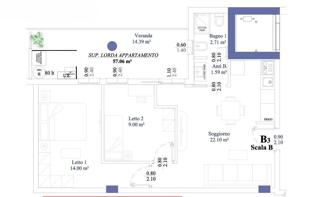 Cagliari – Via Biasi – Trilocali in contesto signorile In uno dei quartieri residenziali più tranquilli e ricercati di Cagliari, nella prestigiosa zona di Via Francesco Ciusa, proponiamo in vendita eleganti trilocali di varie metrature, situati al primo, terzo e quarto piano di uno stabile moderno e ben curato. Ogni appartamento è composto da: Ingresso su ampio soggiorno con angolo cottura Disimpegno, tre camere da letto Un bagno Spaziose e vivibili verande Le unità immobiliari offrono rifiniture superiori, infissi in alluminio, pompe di calore Samsung di ultima generazione per il riscaldamento e raffrescamento, e sistema NUOS per la produzione di acqua calda sanitaria, garantendo efficienza energetica e massimo comfort. Completano la proprietà cantina e posto auto coperto. ✅ Classe energetica A3 Prezzi a partire da € 360.000,00 + IVA Soluzione ideale per chi desidera abitare in un contesto elegante e moderno, a pochi minuti dal centro città. Le immagini pubblicate sono state realizzate o modificate con l’ausilio di intelligenza artificiale e hanno finalità illustrativa. Contattaci per maggiori informazioni o per fissare una visita!