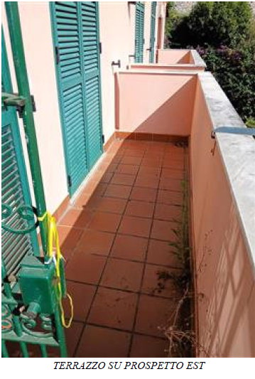 Appartamento interno 2 al piano primo con accesso indipendente tramite scala esterna e ampio terrazzo verandato composto da soggiorno con angolo cottura, camera da letto, bagno e due balconi per mq. 50 circa, con annesso box singolo n. 4 al piano seminterrato di mq. 16.