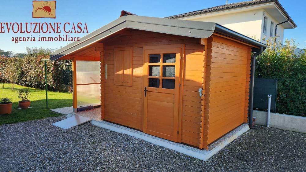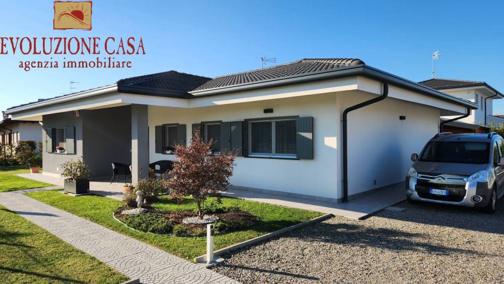 Romans d'Isonzo: in meravigliosa zona residenziale a due passi dalle scuole....recentissima villa singola del 2019 costruita in bioedilizia composta da ingresso, salone, ampia cucina abitabile con uscita sul porticato, disimpegno, 2 grandi matrimoniali, doppi servizi (entrambi finestrati), cantina, lavanderia con doccia, doppio portico di mq.23,44 e mq.9.33, sottotetto uso deposito, doppio posto auto scoperto. Possibilità di recuperare la 3°camera e doppio posto auto coperto in edilizia libera. Riscaldamento a pavimento bizona con pompa di calore, impianto fotovoltaico da 4,5 Kwh con inverter (già predisposto per batterie), doppio clima Sansung da 12.000 btu ciascuno, casetta in legno esterna. Giardino piantumato di circa mq.600. Classe energetica  A4. L'immobile verrà lasciato libero fine 2026:   378.000  (rif.1627)