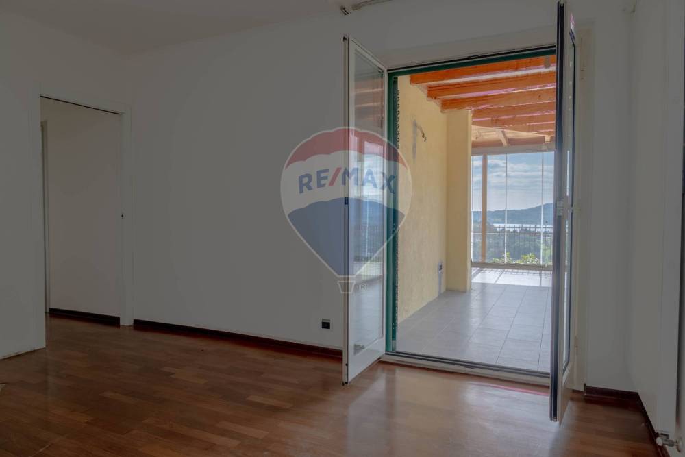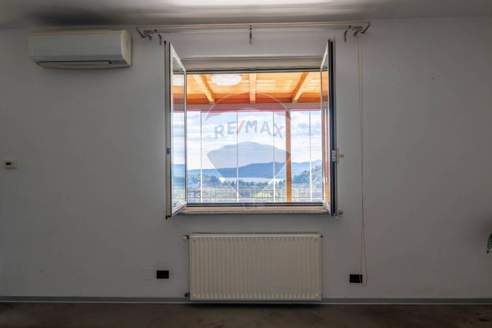 Al piano superiore si apre un ampio soggiorno doppio con pavimento in parquet, suddiviso in zona relax e zona pranzo. Da un lato, si accede a un grande balcone posteriore con patio, area barbecue e spazio ideale per trascorrere momenti conviviali allaperto. Dall'altro lato, una veranda chiusa con pannelli in vetro completamente apribili regala una vista lago semplicemente mozzafiato, perfetta per cene panoramiche in ogni stagione. Sempre su questo piano si trovano una camera da letto con parquet, un bagno finestrato recentemente ristrutturato con doccia e la cucina a vista, in ottimo stato, integrata nel soggiorno. La zona living è dotata di climatizzazione, mentre il riscaldamento del piano è garantito da radiatori.