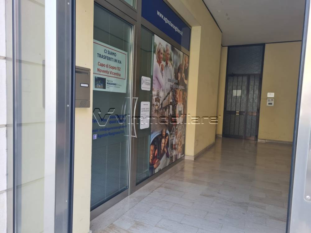 NOVENTA VICENTINA: zona centrale, ufficio/negozio di 120 mq commerciali composto da vano accogliente grande in open space con stanza per zona archivio/studio e su secondo livello altri due vani ad uso ufficio. Dotato di ampie vetrine, fronte strada di forte passaggio pedonale e veicolare. Possibilità di cambio destinazione a commerciale. Classe energetica E - EPgl,ren 171.34 kWh/m³ anno. Euro 1200 mensili.