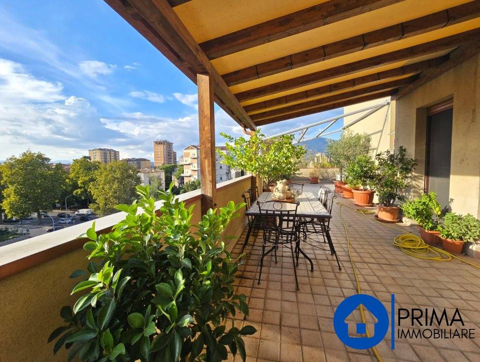 Particolare, coloratissimo e dalla grande personalità! Questo appartamento è unico in tutto e per tutto, dai dettagli unici e vivaci ai meravigliosi terrazzi panoramici.nL'appartamento che vi proponiamo si trova al piano medio di un palazzo edificato nei primi anni 2000, antisismico, termo autonomo e dotato di doppio ascensore.nEntriamo nella proprietà dal portoncino blindato e si apre davanti ai nostri occhi una bellissima zona giorno con grandi vetrate scorrevoli sulla destra e sulla sinistra che portano a due differenti terrazzi abitabili dalla straordinaria metratura rispettivamente affacciati ad est e a ovest, in uno dei quali è stata create una piccola sun room e una zona ombreggiata con tettoia dove poter mangiare all'aria aperta. nOltre ad un'ariosa zona living dove rilassarsi e vedere film e mangiare con gli amici troviamo una moderna cucina con penisola anch'essa con porta finestra al terrazzo.nLa zona notte rimane sapientemente divisa dalla zona giorno grazie ad un disimpegno al quale si accede da una particolare porta in vetro murano scorrevole, qui troviamo 3 camere da letto matrimoniali e due bagni, entrambi con finestra e con doccia. nL'immobile è stato totalmente ristrutturato 10 anni fa ca., troviamo split per l'aria condizionata in tutta l'abitazione, un pavimento moderno effetto legno omogeneo in tutta la casa, eleganti porte a filo muro dai colori intensi e i bagni totalmente rinnovati co rivestimenti e sanitari dal taglio contemporaneo.nLa proprietà è completa di cantina e posto auto condominiale.nL'immobile è perfetto per famiglie che stanno cercando una soluzione dal carattere deciso, che offra spazi ampi da vivere, dove accogliere familiari e amici e divertirsi sui grandi terrazzi.nLa zona è comoda per raggiungere il centro in pochi minuti, i servizi sono vicini come poste, tabaccheria, rosticceria, supermercato e fermate dell'autobus.nContattaci e fissa una visita, una casa così non si trova tutti i giorni!n - Maggiori Dettagli: Porta blindata, Videocitofono, Cantina