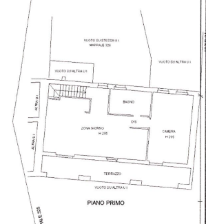 L'unità è composta da: al piano terreno da un ingresso con ampia sala oltre ad un locale sgombero; al primo piano ampio salone con cucina, camera da letto e bagno. Completa il lotto un magazzino di 122 mq.