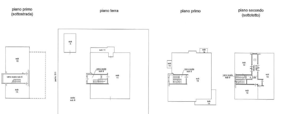 Ci sono anche locali di servizio al piano sottotetto e cantine al piano interrato, oltre a stabile esterno ad uso garage.