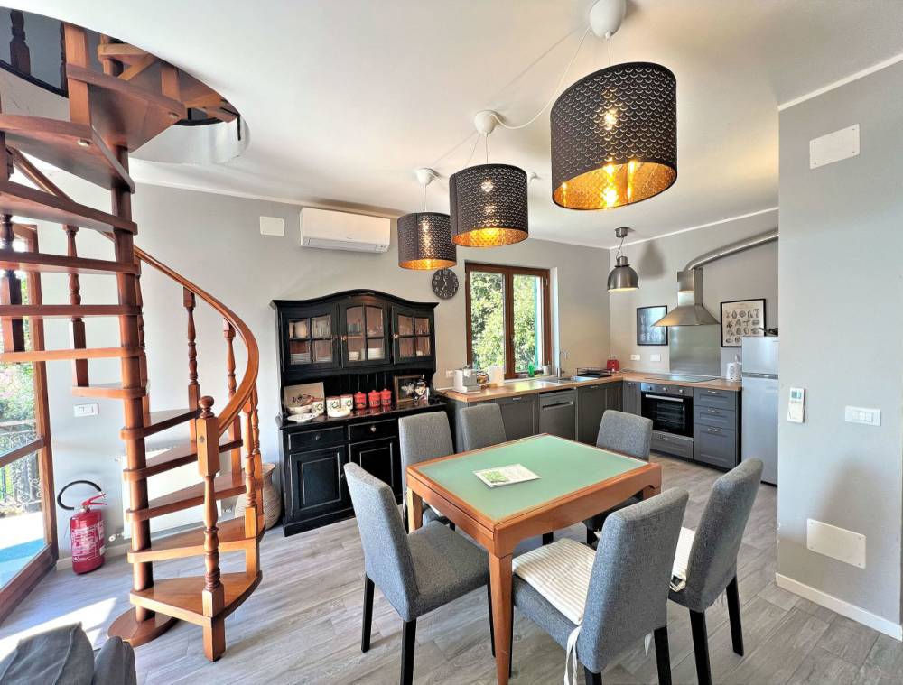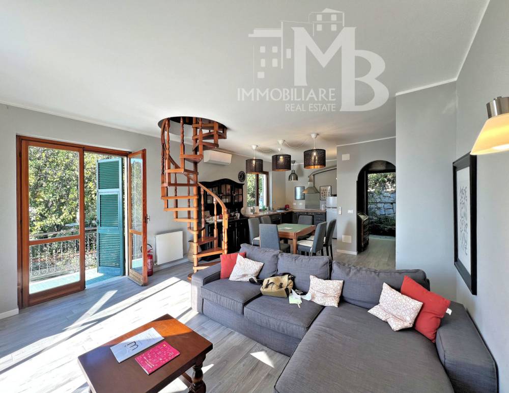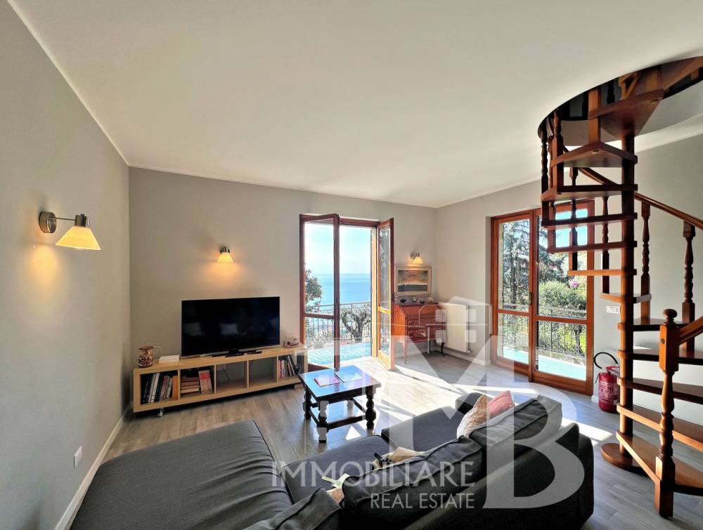 RECCO - Megli - Strepitosa vista mare e promontorio di Portofino- In contesto riservato e tranquillo raggiungibile da strada privata chiusa da cancello elettrico, in piccola palazzina di sole quattro unità abitative proponiamo questo prestigioso immobile avente ingresso indipendente in giardino di proprietà e che si sviluppa su due livelli; al piano d'ingresso troviamo una panoramica e soleggiata zona giorno suddivisa in cucina living e sala pranzo/salotto dal quale si accede alla profonda balconata che regala una vista incantevole sul golfo; un disimpegno che da accesso a due camere e ad un bagno completo e finestrato. Dal salone infine si sale una comoda scala a chiocciola e si raggiunge il piano mansardato adibito a zona notte, dove si trovano due ampie camere dotate di grandi lucernai panoramici ed un ulteriore bagno. Completano la proprietà due comodi posti auto, un box e oltre al giardino/agrumeto adiacente l'ingresso un ulteriore giardino pensile. sopra il box. L'immobile è termoautonomo. Richiesta € 1000.000 compresi box e posti auto Ape G