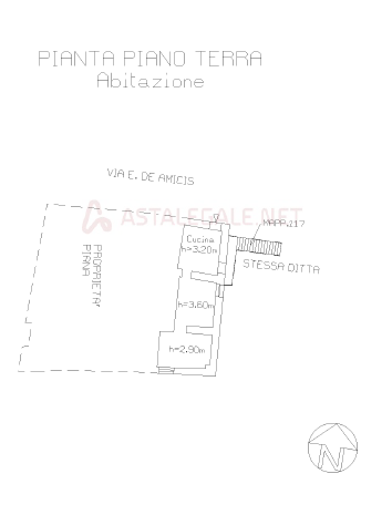 Alloggio da ristrutturare composto da: tre vani al piano primo del fabbricato (posto a livello strada) con accesso diretto dalla strada nonché - mediante scala esterna con smonto su ballatoio comunicante - da corte laterale sottostante da cui si accede a locale accessorio posto al piano terra.
