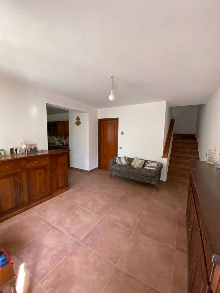 Casa associata, bifamiliare, libera su tre lati, in aderenza con altra proprietà, sita in posizione collinare e panoramica, abitabile da subito, in discreto stato di conservazione con corte esclusiva di circa 500 mq. L'immobile è composto da un ingresso autonomo su zona giorno al piano terra con bagno ad aspirazione forzata, lavanderia e cantina, scala di collegamento con il primo piano con due camere da letto matrimoniali e una cameretta, tutte con balconi, un grande bagno finestrato.