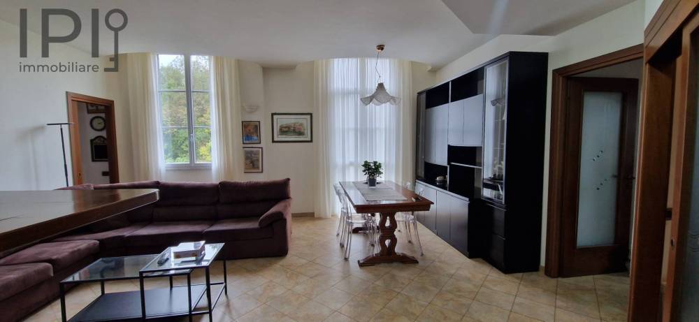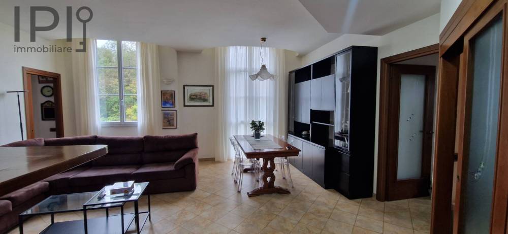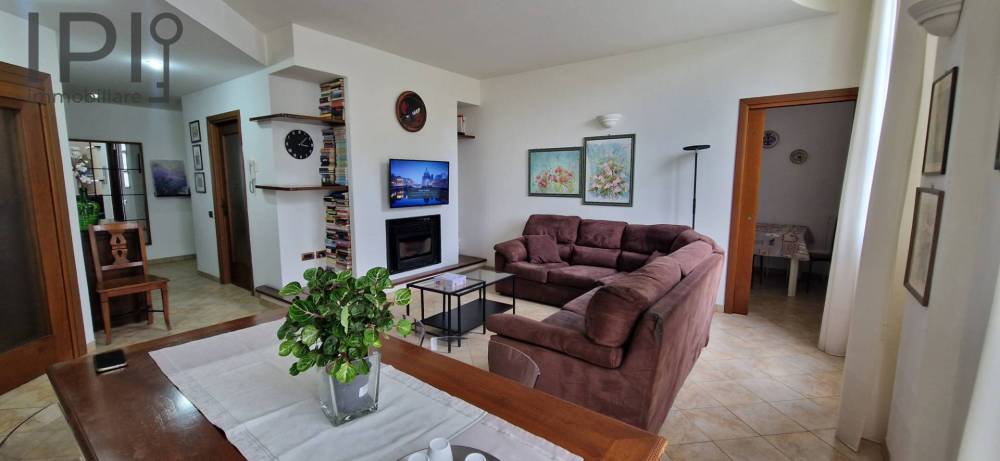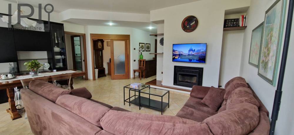Posto al secondo piano con ascensore, ci accoglie con un ampio ingresso che rimanda alla spaziosa ed accogliente zona giorno con bellissimo caminetto ed ampie superfici finestrate; il cartongesso ai soffitti, che ospita anche parte dell' impianto di illuminazione, crea un atmosfera calda, ospitale e non banale. Dalla zona living si accede alla cucina abitabile con balcone e ad un angolo studio separato da porte scorrevoli in legno e vetro decorato. La zona notte comprende 3 camere da letto di cui, la matrimoniale, con balcone, oltre a bagno con doccia. A disposizione anche un secondo ampio bagno con antibagno e vasca idromassaggio. Lo spazioso angolo dispensa è completato da un locale lavanderia. Completano la proprietà un garage ed una cantina.