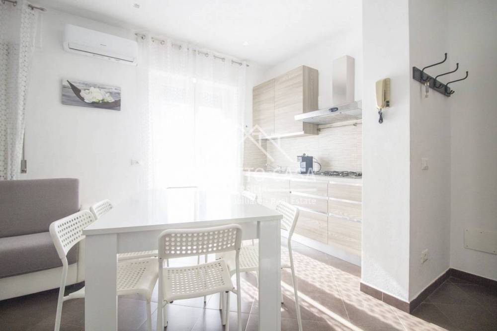 Varcando la soglia d'ingresso di questa abitazione, situata al primo piano, si viene accolti direttamente da una generosa zona giorno open space, fulcro della vita sociale della casa. Qui troviamo il soggiorno che si fonde con la cucina, creando un ambiente arioso e in tipologia openspace, impreziosito da un pratico terrazzino di servizio che dona luce e respiro. Attraverso un disimpegno ben strutturato, si prosegue nella zona notte, pensata per il riposo e la privacy. Qui attendono due spaziose camere matrimoniali e due bagni, entrambi finestrati, un dettaglio che ne amplifica la funzionalità e il comfort. Questa casa, con una metratura di 74 mq, si presenta in ottime condizioni, essendo stata oggetto di una recente e accurata ristrutturazione. Gli infissi nuovi con doppio vetro camera, l'aria condizionata, e il portone blindato sono garanzia di un comfort abitativo immediato. La possibilità di acquistarlo anche arredato lo rende una soluzione "chiavi in mano" ideale per chi cerca una casa vacanza o una residenza pronta all'uso.